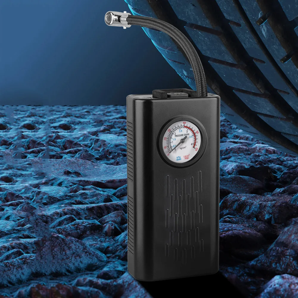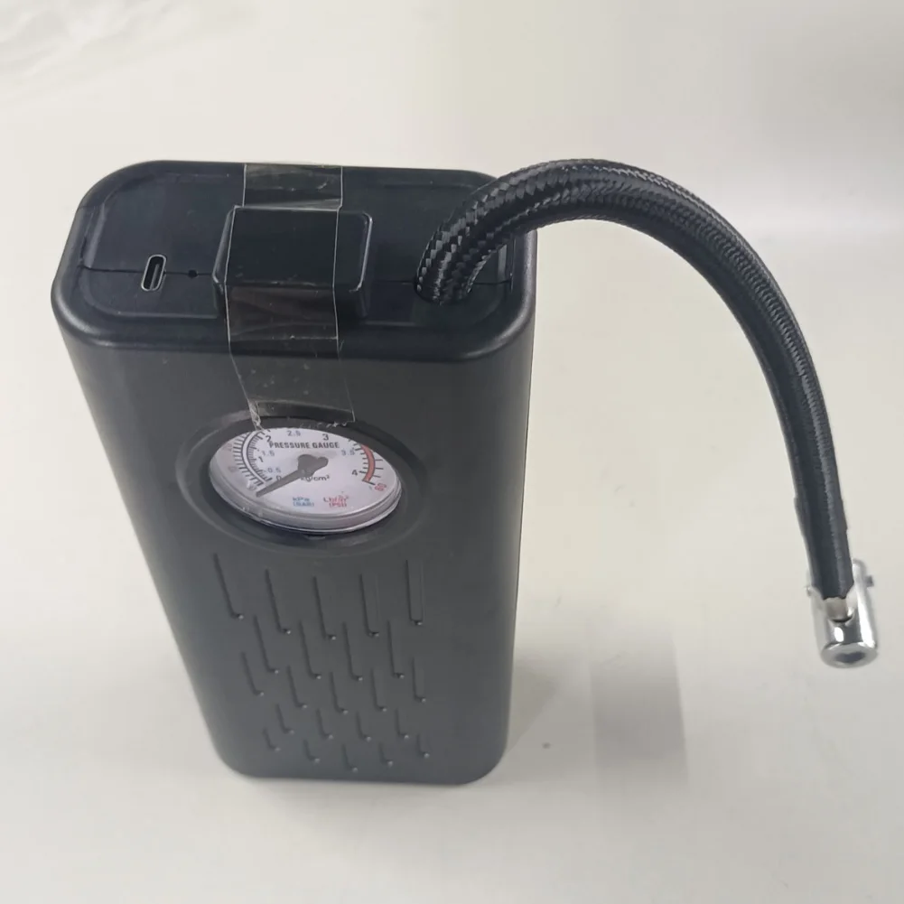 Compresseur d'air électrique rechargeable par USB - Gonfleur de pneus de moto - Pompe à pneus électrique multifonctionnelle pour moto, voiture et vélo Caractéristiques : 1. Manomètre précis : L'affichage intuitif à aiguille de notre compresseur d'air électrique fournit une lecture immédiate et précise de la pression actuelle des pneus, vous permettant ainsi de garantir un gonflage optimal pour des performances optimales. 2. Tuyau flexible et pratique : Profitez d'un gonflage facile grâce au tuyau flexible de 23 cm de ce gonfleur de pneus. L'accès aux valves est facilité, pour un gonflage plus pratique et efficace. 3. Compact et portable : Conçue pour être facilement transportée, notre pompe à air portable se range sans effort, ce qui en fait le compagnon de voyage idéal pour maintenir la pression des pneus lors de vos déplacements, que ce soit pour une longue balade à vélo ou une aventure en plein air. 4. Rechargeable par USB : Rechargez votre gonfleur de pneus de moto en toute simplicité grâce à la recharge USB universelle. Compatible avec les chargeurs de téléphone et les ordinateurs, il vous offre la flexibilité de le recharger partout et à tout moment. 5. Utilisation polyvalente : Notre pompe à vélo portable n'est pas réservée aux vélos. C'est un outil multifonctionnel équipé de différents embouts, adapté à une large gamme de véhicules, y compris les motos et les voitures. Un seul appareil pratique pour répondre à tous vos besoins de gonflage. Spécifications : Origine : Chine continentale Matériau principal : ABS Couleur : Noir Dimensions : Environ 16,2 cm x 8,5 cm x 4,8 cm Poids net : Environ 442,5 g Chargement : USB Type-C Batterie : 3000 mAh Compatible avec : Valve Schrader Puissance nominale : 80 W Remarque : En raison des différences d'affichage et d'éclairage, la couleur réelle de l'article peut légèrement différer de celle affichée sur les photos. Merci de votre compréhension. Veuillez prévoir une marge d'erreur de 1 à 2 cm due à la mesure manuelle.