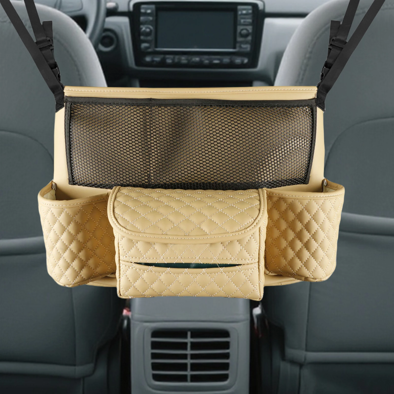 Organiseur voiture pour sac et téléphone – Accroche entre sièges en cuir PU.
